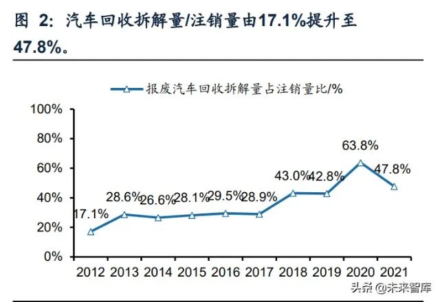 (一)報(bào)廢汽車拆解需求旺盛,報(bào)廢高峰期已至汽車回收拆解行業(yè)景氣上行,近五年來拆解量復(fù)合增長率達(dá)10%。據(jù)公安部統(tǒng)計(jì),2021年我國報(bào)廢汽車回收拆解量近250萬輛...