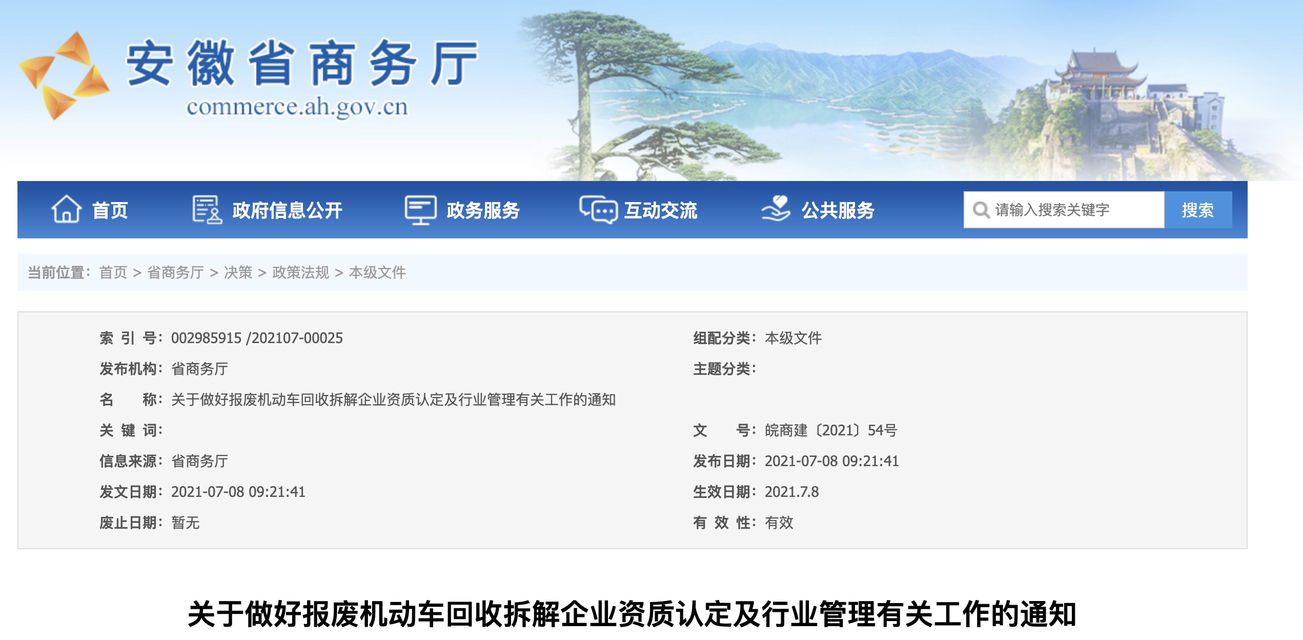2021年7月,省商務(wù)廳、省發(fā)展改革委、省經(jīng)信廳、省公安廳、省生態(tài)環(huán)境廳、省交通運(yùn)輸廳 、省市場(chǎng)監(jiān)管局聯(lián)合印發(fā)《關(guān)于做好報(bào)廢機(jī)動(dòng)車回收拆解企業(yè)資質(zhì)認(rèn)定及行業(yè)管理...