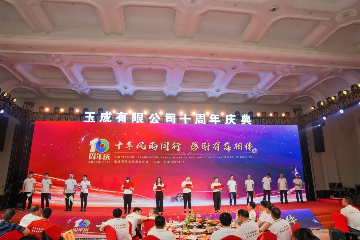 公司成立十周年慶典活動于2021年7月24日在合肥白金漢爵大酒店隆重舉行。慶典活動的主題:十年風(fēng)雨同行,感謝有你相伴。 時光飛逝,歲月如梭,玉成深耕報廢車行業(yè)已十個年頭,一路走來,經(jīng)歷坎坷、自我提升、實(shí)現(xiàn)涅槃,逐漸成長為一名健碩的“報廢車狂人”,已成為報廢車行業(yè)國內(nèi)頭部企業(yè)。